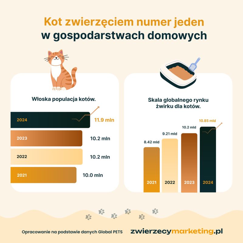 Przez lata rynek pet rozwijał się w logice dog first. Produkty, komunikacja, usługi i innowacje były projektowane głównie z myślą o psach. Tymczasem dane z najnowszego raportu GlobalPETS pokazują wyraźnie, że to kot staje się dziś zwierzęciem numer jeden w gospodarstwach domowych.